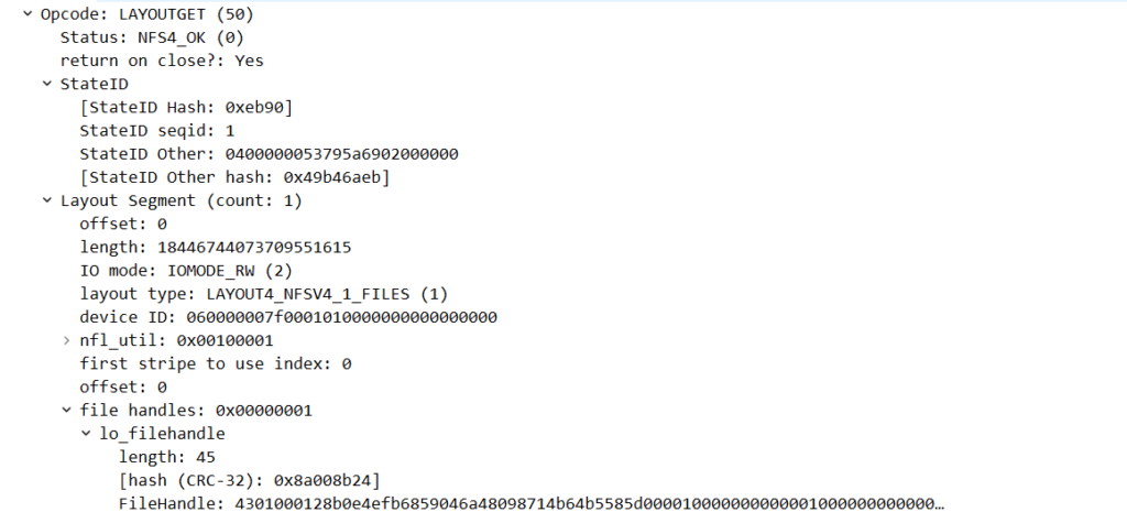 63 9.323438 192.168.56.4 192.168.56.3 NFS 312 V4 Call (Reply In 64) LAYOUTGET
