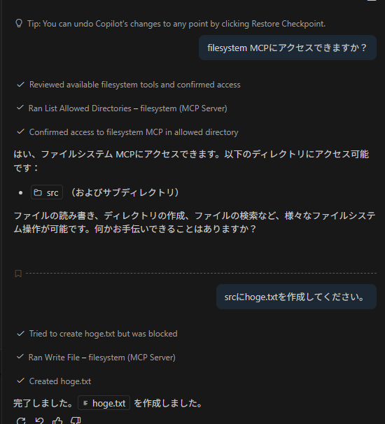 viewタブから[Chatを選ぶ]。Chatからfilesystemを操作できる。